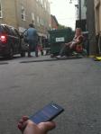 -“Only light security is on set right now. They have the screen drawn over the bookstore and someone seated out front,” via @CityGirlScapes