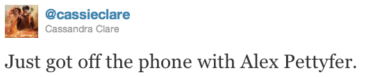 32 Comments on Cassandra Clare has spoken with Alex Pettyfer