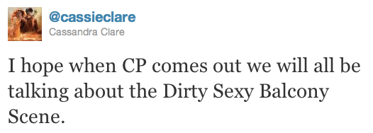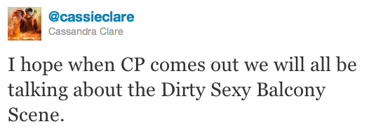 10 Comments on Cassandra Clare teases about Dirty Sexy Balcony Scene in ‘Clockwork Prince’