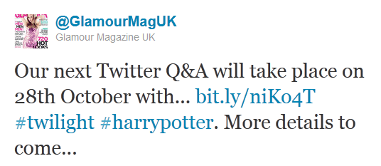 Bower will participate in a live Twitter Q & A with fans through Glamour U.K. on Oct. 28.
