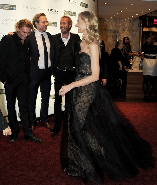 LONDON, ENGLAND - OCTOBER 25: (EMBARGOED FOR PUBLICATION IN UK TABLOID NEWSPAPERS UNTIL 48 HOURS AFTER CREATE DATE AND TIME. MANDATORY CREDIT PHOTO BY DAVE M. BENETT/GETTY IMAGES REQUIRED) Actors Jamie Campbell Bower, Rafe Spall, Rhys Ifans, and Joely Richardson attend the premiere of 'Anonymous' during the 55th BFI London Film Festival at Empire Leicester Square on October 25, 2011 in London, England. (Photo by Dave M. Benett/Getty Images)