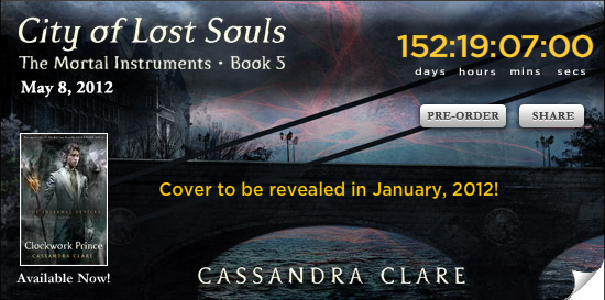 The cover for City of Lost Souls, the fifth installment of The Mortal Instruments, will be unveiled in January 2012!
