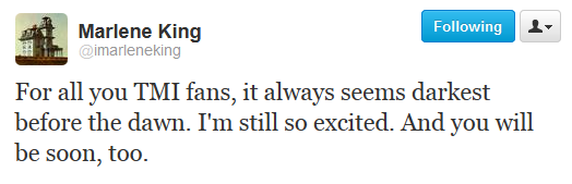 King reassured fans that Constantin Films, who owns the film rights, is the right studio for The Mortal Instruments and that things are looking bright.