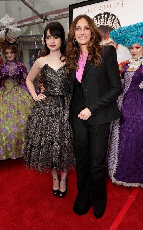 "It was a created world every day that I just couldn't believe that I was in. I mean Tarsem made a snow globe of magic every day and we had the sets there and the props and everything. And the costumes were huge and they made you feel like you were truly part of that world. It was like being in a dream every day," said Collins. "We didn't want to do a caricature of an animated princess. We really wanted to make her a real girl that girls could relate to today and to make her some sort of a fighter physically and emotionally because in today's world the girl saves the boy as much as the boy saves the girl and I think it takes a strong man to accept help from a woman but I think it also says a lot about today's world where girls have to do anything as well," said Collins.Check out more photos from the premiere:
