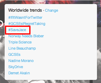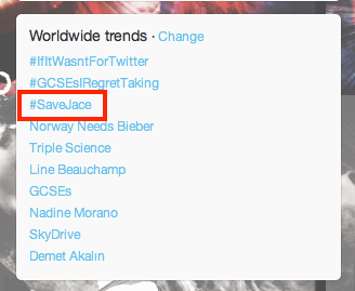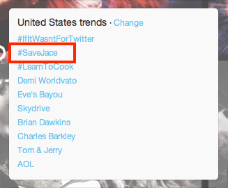 Thirty minutes later #SaveJace was the No. 3 trending topic worldwide.