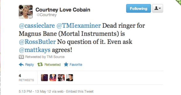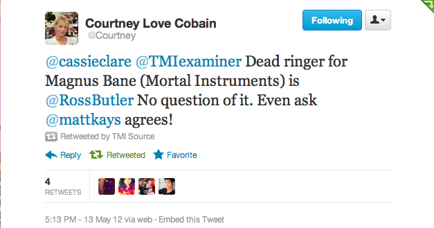 Butler already has the support of celebrity and ‘Mortal Instruments’ fan Courtney Love.