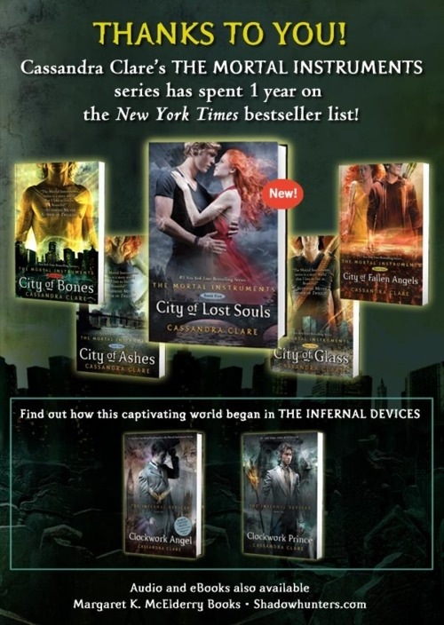 Cassandra Clare’s international bestselling series ‘The Mortal Instruments’ has spent one year on the New York Times Bestsellers List.