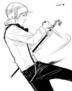 Looks: Magnus maybe a little older than the rest of the crushes that are in the tournament – like maybe 800 years older, but the guy doesn’t look OR act his age. He has spiky black hair and cat like, green-yellow, eyes that smolder (at least in my head they do) when he looks at another beautiful character. I mentioned Magnus’s awesome fashion sense and here is a snip-it of his attire during City of Ashes: “Even the Inquisitor’s eyebrows shot up when Magnus strode through the gate. The High Warlock was wearing black leather pants, a belt with a buckle in the shape of a jeweled M, and a cobalt-blue Prussian military jacket open over a white lace shirt. He shimmered with layers of glitter.” All right ladies, don’t be jealous that he dresses better than us! I mean look at that style!