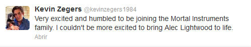 Zegers expressed his excitement in joining the Mortal Instruments family on his Twitter page.