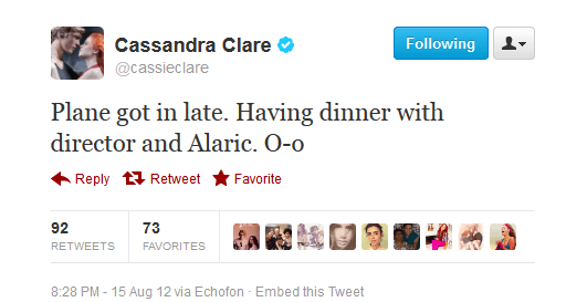7 Comments on Cassandra Clare is in Toronto for CITY OF BONES filming