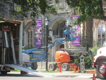I found multiple trucks stationed outside as well as many signs designating the locale as the TMI TO Set. This was around the time I met MichelleMags and we patiently waited until we saw something or someone from the cast. This is the view we saw as we waited for a couple hours.
