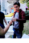 Following after him was Kevin Zegers walking back to set. I said hello, he smiled (with teeth) but again, the others were too star-strucked to ask for an autograph. A few more hours later, Robert comes back to set. I see him crossing the road wearing his ‘Made in Brooklyn’ shirt (fifth time) and immediately took my camera out. He was walking towards us as he pulled his red sweater around him with all big smiles as we snapped photographs of him. Adrienne, my favorite 4”8 20 year old turns and ask “can we have your autograph?” Robert turns and says  “of course”