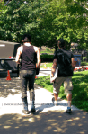 I’m Michelle Mags and here I am again bringing you set report for #TMISetDay5! I headed towards the set location around 11:30 because I remember one of the crew guys telling me they won’t start until noon during my visit for #TMISetDay4. I met up with Maia by the field and she says, “I think I saw Rob and Jamie by the bench!” Adrenaline pumping in our veins, we ran to the closest bench and looked at them. I got ahead of myself and began tweeting, which now I should find the time to address that I really am sorry for the false alarm guys. Seriously, I felt like crap for two hours (that’s until we meet Kevin Zegers). The weather was not as beautiful as yesterdays so it made my day even worse. Maia and I decided to walk around while waiting for Gelyn. Minutes dragged by and we decided to walk to the fries and burger truck (love that place, their poutine is to die for). After eating half our poutine, we began walking really slowly back to set because we practically thought that the day was so boring and dead. All of a sudden, as we walk around this gigantic machine that’s blocking the sidewalk (it’s on the second picture) Maia began walking really fast then I looked up and saw this man in all black and sleevless shirt with Mr. Sideburnsguy with him.