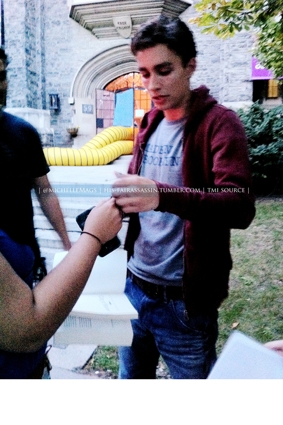 Kevin Zegers and Mr. Sideburnsguy walked much faster and by the time they reached the machine “the herd” stopped running right in front of the Institute doors. I totally lost all appetite for my poutine. Maia and I couldn’t believe what just happened. The herd, who are now my really, really good friends came to us and said, “Oh my god, Kevin Zegers just gave you his autograph!” then one girl named Kim said, “Can I give you a hug? You have Kevin Zegers all over you!” And at that point I didn’t even know her but gave her a tight hug because my knees were all too jelly and I was just so filled with happiness. Yes, that is how we Shadowhunters make awesome friends!