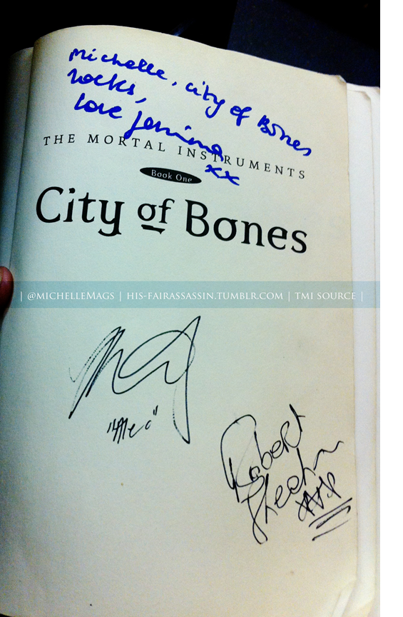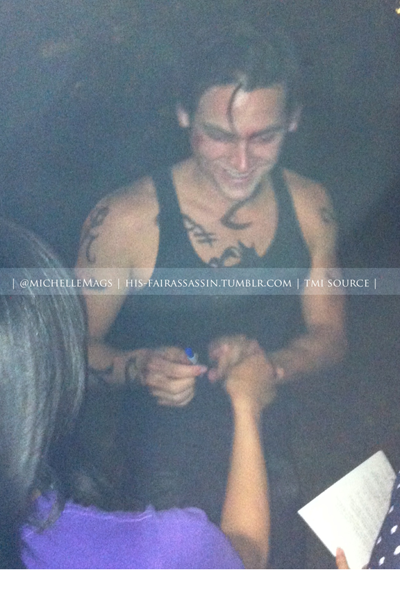 As Jemima walked to us we asked for her autograph and she was wearing her day clothes (not TMI costume) so she said “of course, yeah” – her ACCENT people. I know she’s gorgeous and all but holy crap her accent is wowza. I was standing right next to her the whole time! She signed Adrienne’s book first and she even asked for our names when she signed our books! We all couldn’t stop saying “thank you, thank you so much” and she would chuckle. Her voice was wearing down which explains her rugged voice but she still sounded like an angel.