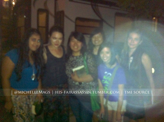 Gelyn, Maia, Amanda, Ann-Marie and I walked again to the back and stayed by the field near the lunch room/building for the TMI cast. So bored out of our minds we ran around and tried doing the jump-click-ankles thing. I don’t really know the legitimate title of what we did but we practically looked like a crazed monkeys running around the field.