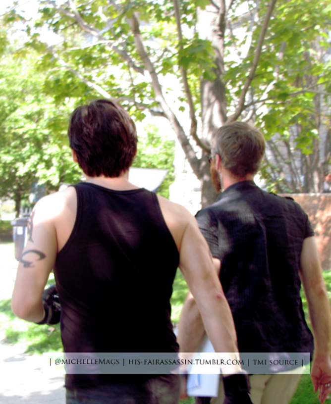 I’m Michelle Mags and here I am again bringing you set report for #TMISetDay5! I headed towards the set location around 11:30 because I remember one of the crew guys telling me they won’t start until noon during my visit for #TMISetDay4. I met up with Maia by the field and she says, “I think I saw Rob and Jamie by the bench!” Adrenaline pumping in our veins, we ran to the closest bench and looked at them. I got ahead of myself and began tweeting, which now I should find the time to address that I really am sorry for the false alarm guys. Seriously, I felt like crap for two hours (that’s until we meet Kevin Zegers). The weather was not as beautiful as yesterdays so it made my day even worse. Maia and I decided to walk around while waiting for Gelyn. Minutes dragged by and we decided to walk to the fries and burger truck (love that place, their poutine is to die for). After eating half our poutine, we began walking really slowly back to set because we practically thought that the day was so boring and dead. All of a sudden, as we walk around this gigantic machine that’s blocking the sidewalk (it’s on the second picture) Maia began walking really fast then I looked up and saw this man in all black and sleevless shirt with Mr. Sideburnsguy with him.