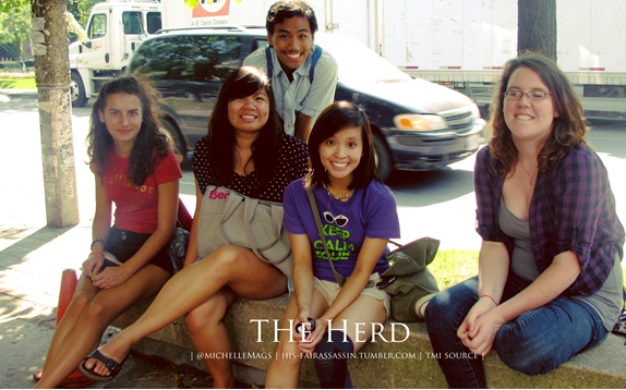 Much hours later: Gelyn, Ann-Marie, Amanda and Maia go to the cheeseburger and fries truck while I continue making friends with the Herd. Thankfully this group of people understands me: my snide comments, my absolute love for everything TMI, and we all seemed to watch the same shows (spanning from Doctor Who to the Vlogbrothers, any show you could think of, we talked about).