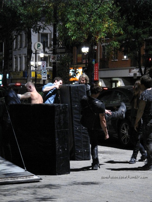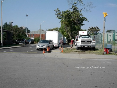 My personal journey to The Mortal Instruments set in Toronto had to start from leaving Montreal for me. So I woke up at 5AM on friday in order to catch my 6:45 train. Lovely journey, at 11:30 I was at Union Station, but I still had to leave my luggage at my hostel, so this is just what I did, and returned to Union afterwards in order to catch the 1:30PM bus to Hamilton.  I cut it pretty close, so I had to run in order to catch the bus, and upon entering, the driver told me it was full.  “NO!!” I though, only to hear what came afterwards: “But you can make the drive standing up.” So what the heck, TMI is too important, I decided that hurt knee or not, it was more important to arrive the earliest possible on set, and I entered the bus for the 1 hour drive.  It’s a pretty lucky thing that the GO bus terminal in Hamilton is literally just a 5 minutes walk from where the set was, and I honestly don’t understand why more people from Toronto didn’t make the trip. At 2:30PM when I got there, the place was pretty quiet, with only a few people being there, most from the Hamilton area.