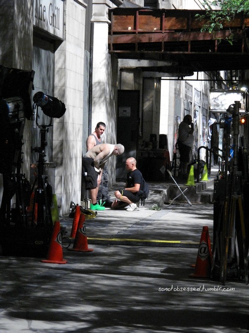 During that time, on the stunt front, every stunt person (including the stars’ doubles) were getting busing getting mats out of their trailer. (So I was really costume-happy there.) They however stopped at some point after a stunt looked like he had some kind of injury on his foot or knee. So everything was packed back inside the trailer.