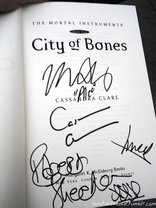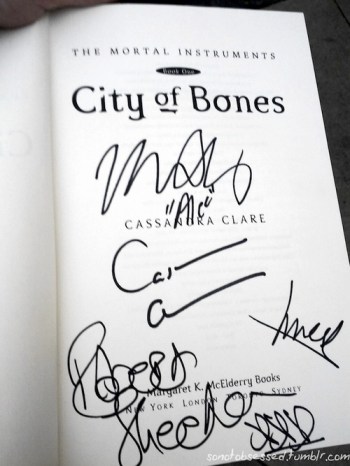 “Is that Cassandra Clare’s autograph? (Yep!) God she signs like a robot!”