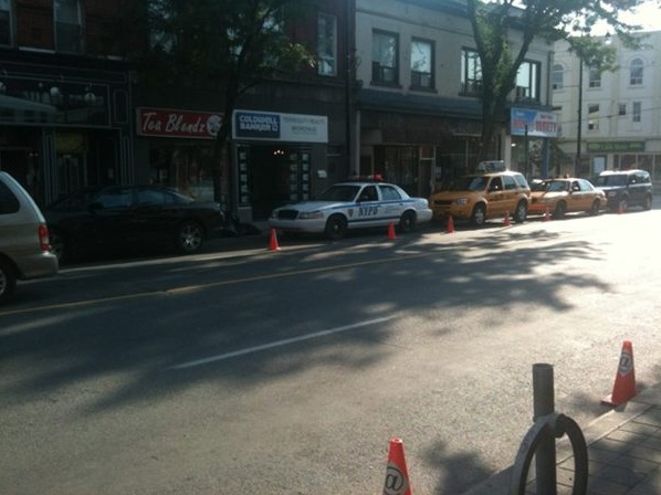 -“Only light security is on set right now. They have the screen drawn over the bookstore and someone seated out front,” via @CityGirlScapes