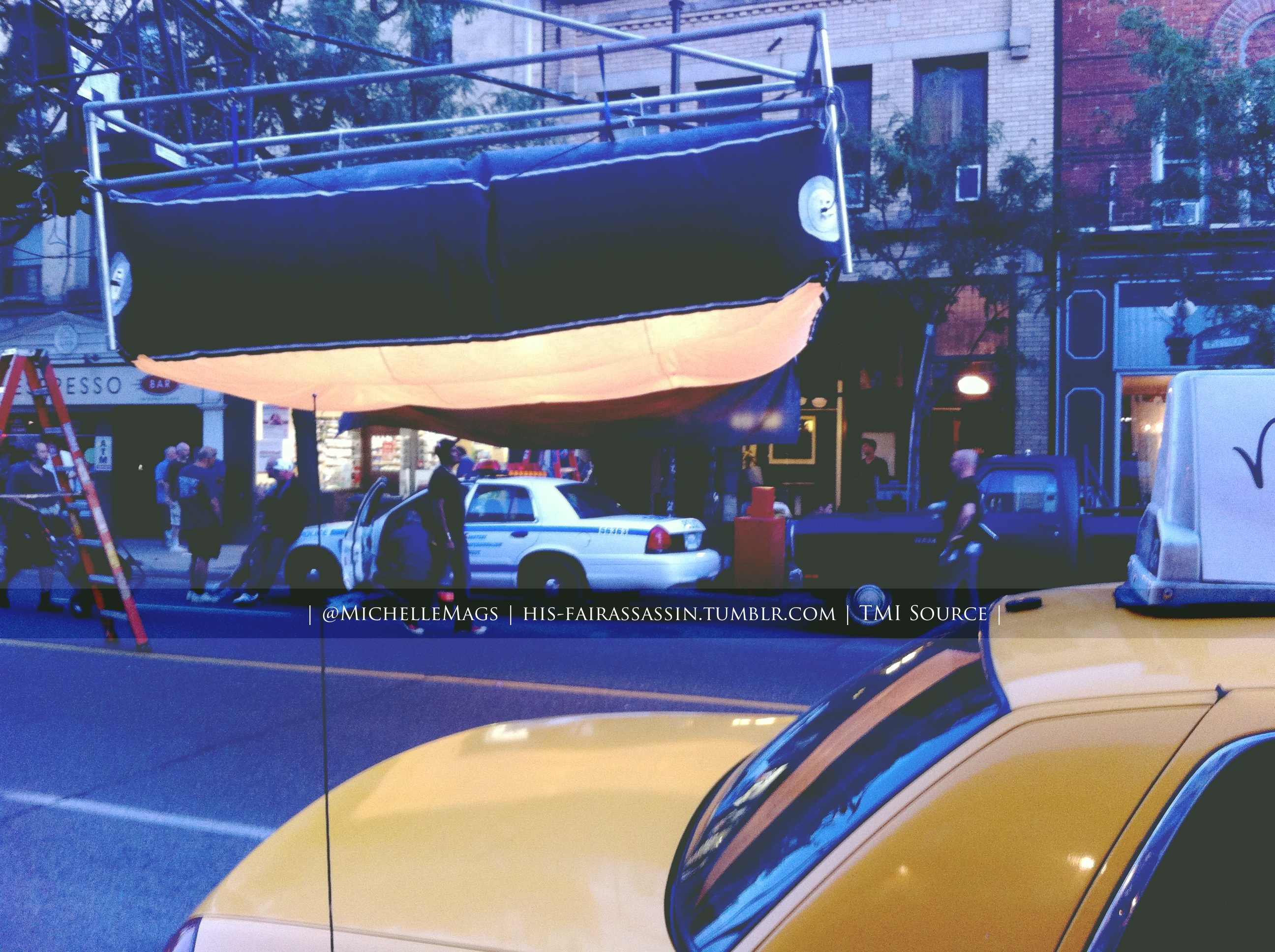 As for the photos, I know I haven’t been doing a splendid job and that’s because I stay a quite far distance from them due to border that they’ve created. Also, I’m not sure if you can tell but most of the pictures have blurred out areas of the store/shop signs and that is because I do not want to get busted by the TMI Crew and to prove to them, not that they got mad at me or anything– that this is just for fans and people to witness what’s going on rather than telling you guys details of what they’re filming. In other words, my reports are just to share my personal experiences with the crew and actors but I do not intend to be banned from set and no longer be able to write reports for you awesome Shadowhunters.