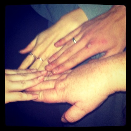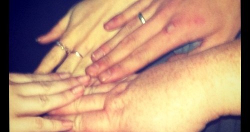 My hand, Jamie Campbell-Bower (Jace’s) hand, Lily Collins (with the two silver rings) (Clary’s) hand and Grace’s hand.