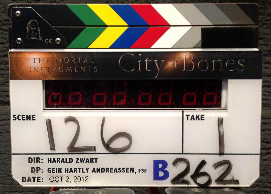 THE MORTAL INSTRUMENTS: CITY OF BONES director Harald Zwart shared a photo of the slate from yesterday’s shoot in Toronto.