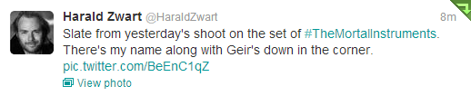 Director Harald Zwart tweets photo from THE MORTAL INSTRUMENTS: CITY OF BONES set
