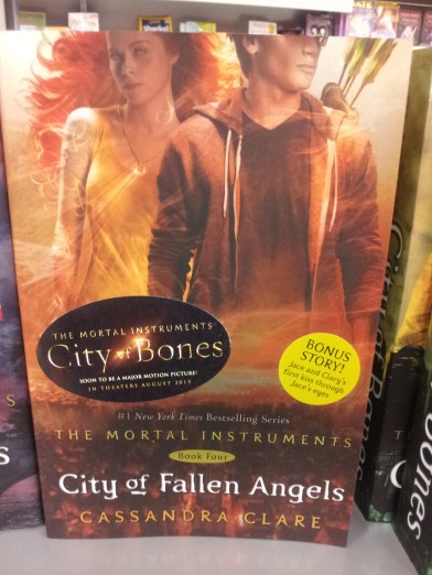 A paperback edition of CITY OF FALLEN ANGELS, which features a bonus story of Jace’s perspective of his and Clary’s first kiss, as well as the official THE MORTAL INSTRUMENTS: CITY OF BONES sticker on the cover.