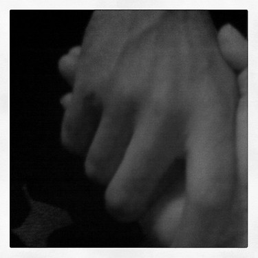 “My hand and Aidan Turner’s hand. He is very proud of the fighting scar on his knuckle.”