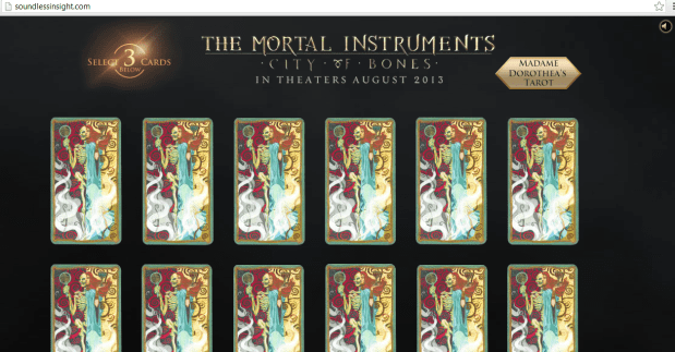 Sony Pictures has launched SOUNDLESSINSIGHT.COM, an interactive Mortal Instruments: City of Bones-related site that allows fans to get tarot card readings from Madame Dorothea.