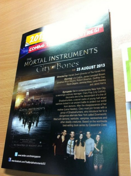 Not only were they treated to THE MORTAL INSTRUMENTS: CITY OF BONES teaser trailer on the big screen, but they got an advertisement flyer for the film.