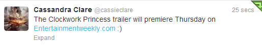 The Clockwork Princess book trailer will premiere Thursday at 9 a.m. ET on Entertainment Weekly (EW.com).