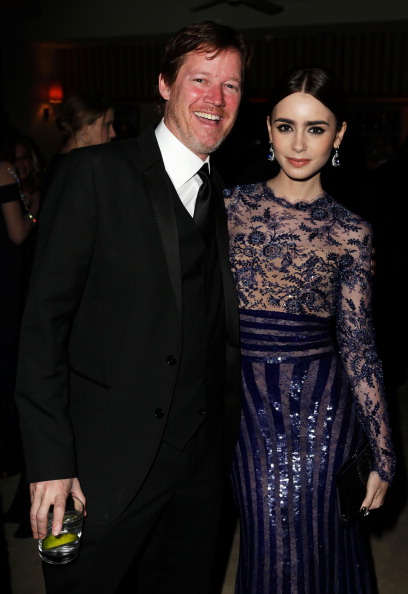 WEST HOLLYWOOD, CA - FEBRUARY 24: (EXCLUSIVE ACCESS SPECIAL RATES APPLY; NO NORTH AMERICAN ON-AIR BROADCAST UNTIL FEBRUARY 28, 2013) Nick Styne and Lily Collins attend the 2013 Vanity Fair Oscar Party hosted by Graydon Carter at Sunset Tower on February 24, 2013 in West Hollywood, California. (Photo by Jeff Vespa/VF13/WireImage)