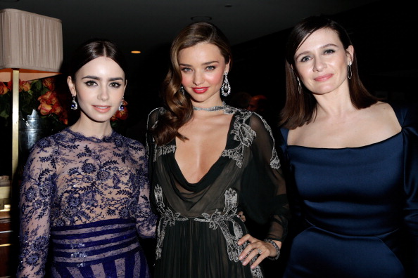 WEST HOLLYWOOD, CA - FEBRUARY 24: (EXCLUSIVE ACCESS SPECIAL RATES APPLY; NO NORTH AMERICAN ON-AIR BROADCAST UNTIL FEBRUARY 28, 2013) (L-R) Actress Lilly Collins, model Miranda Kerr, and actress Emily Mortimer attend the 2013 Vanity Fair Oscar Party hosted by Graydon Carter at Sunset Tower on February 24, 2013 in West Hollywood, California. (Photo by Jeff Vespa/VF13/WireImage)