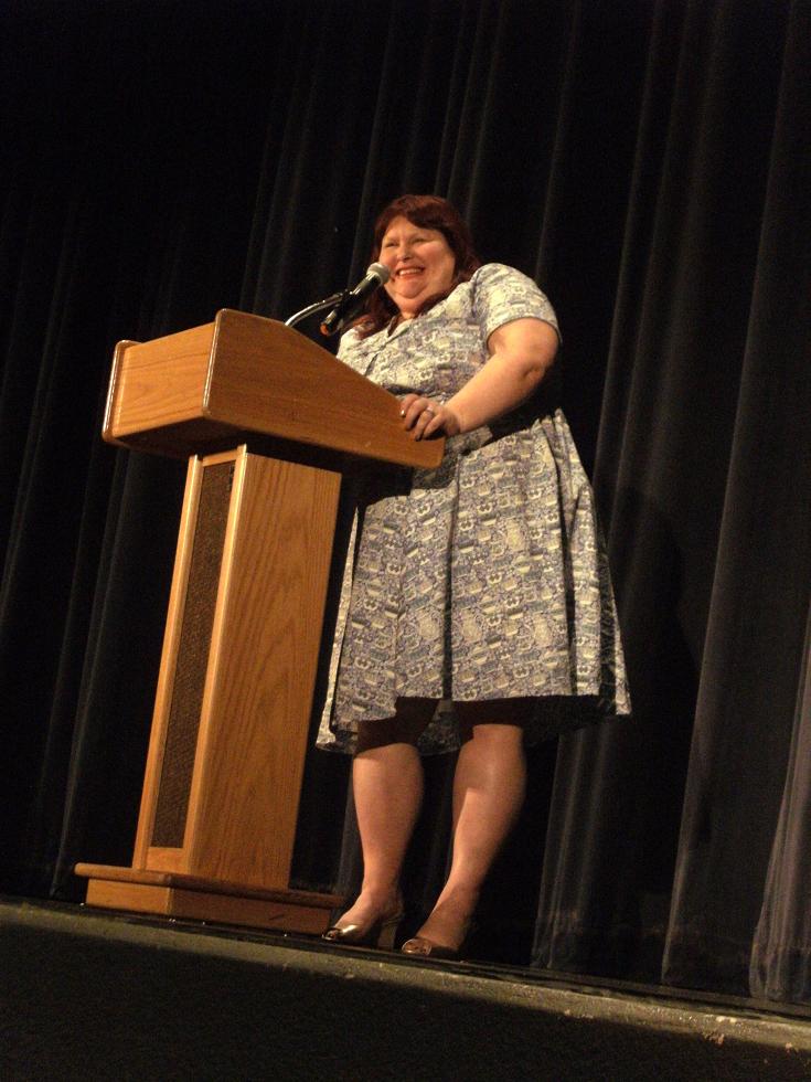 The Clockwork Princess bus is large. The inside from what I could see looked comfortable and inviting with a fancy sink and plush chairs. Not a bad way to spend several days riding around the west meeting groups of people who adore you. I'll admit I wish I was on it. The idea of spending a week with these three funny, sweet, intelligent women would be alluring to anyone. I did have the pleasure- along with a few hundred other people- of spending some time with them on Tuesday in Mesa, AZ. There were fancy dresses, goofy dances and serious questions. Cassie was gracious and did her best to answer all the questions that she possibly could in the very short time she was allotted. I'm sure we all would have been happy to sit there for hours listening to her talk about the series we all love. As well as the three series we have yet to read The Bane Chronicles (co-written with Maureen Johnson and Sarah Rees Brennan), The Dark Artifices and The Magisterium (co-written with Holly Black).