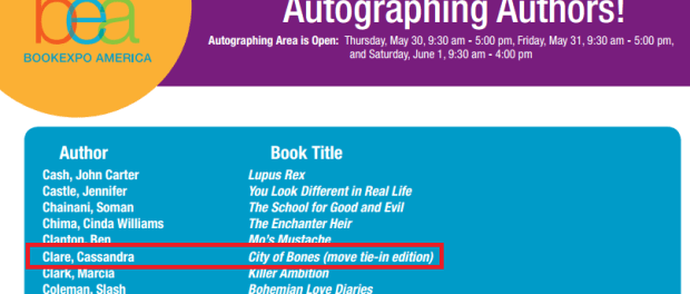 1. BEA: Cassandra Clare to sign CITY OF BONES movie tie-ins on Friday, May 31 | TMI Source