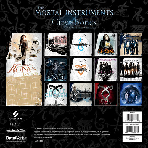 Here is your first look at the 2014 Mortal Instruments: City of Bones 16-month wall calendar from Trends International.