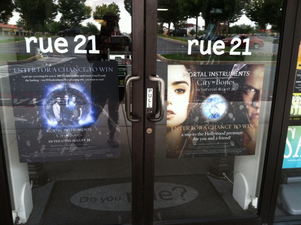 Aside from sponsoring a giveaway for two to the Hollywood premiere of the film on August 12, Rue21 is also a sponsor on two stops on the upcoming Mortal Instruments national mall tour in Chicago and Philadelphia.