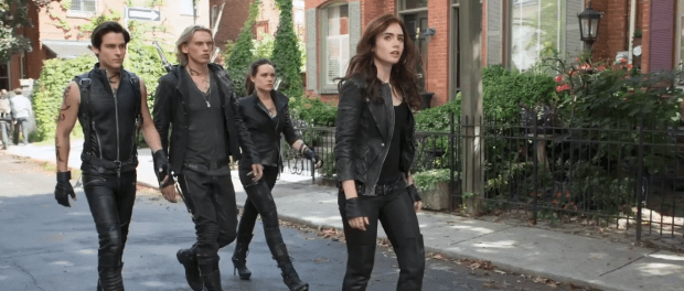2. I’m just nitpicking here, but would Shadowhunters–except maybe Isabelle–really go hunting wearing such ridiculous heels? But, hey: it’s a movie, and they look good.