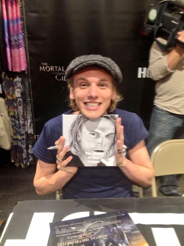 On Wednesday in Miami, I caught up with Jamie at the autograph portion of the Mortal Instruments mall event, where I gave him the book. And he absolutely loved it. I got a high five.