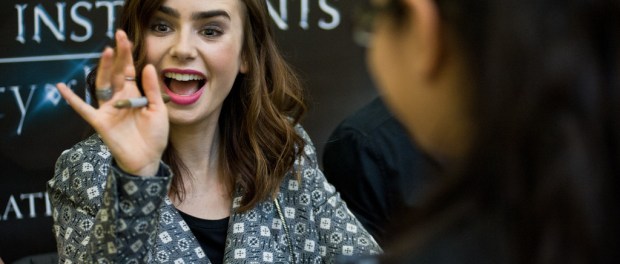 Lily Collins is in New York today (August 5) promoting The Mortal Instruments: City of Bones, which hits theaters on August 21. Before stopping by Late Night with Jimmy Fallon (which will air tonight at 12:35/11:35c on NBC), Lily will be making an appearance at the Apple Store in Soho at 7:30 PM.