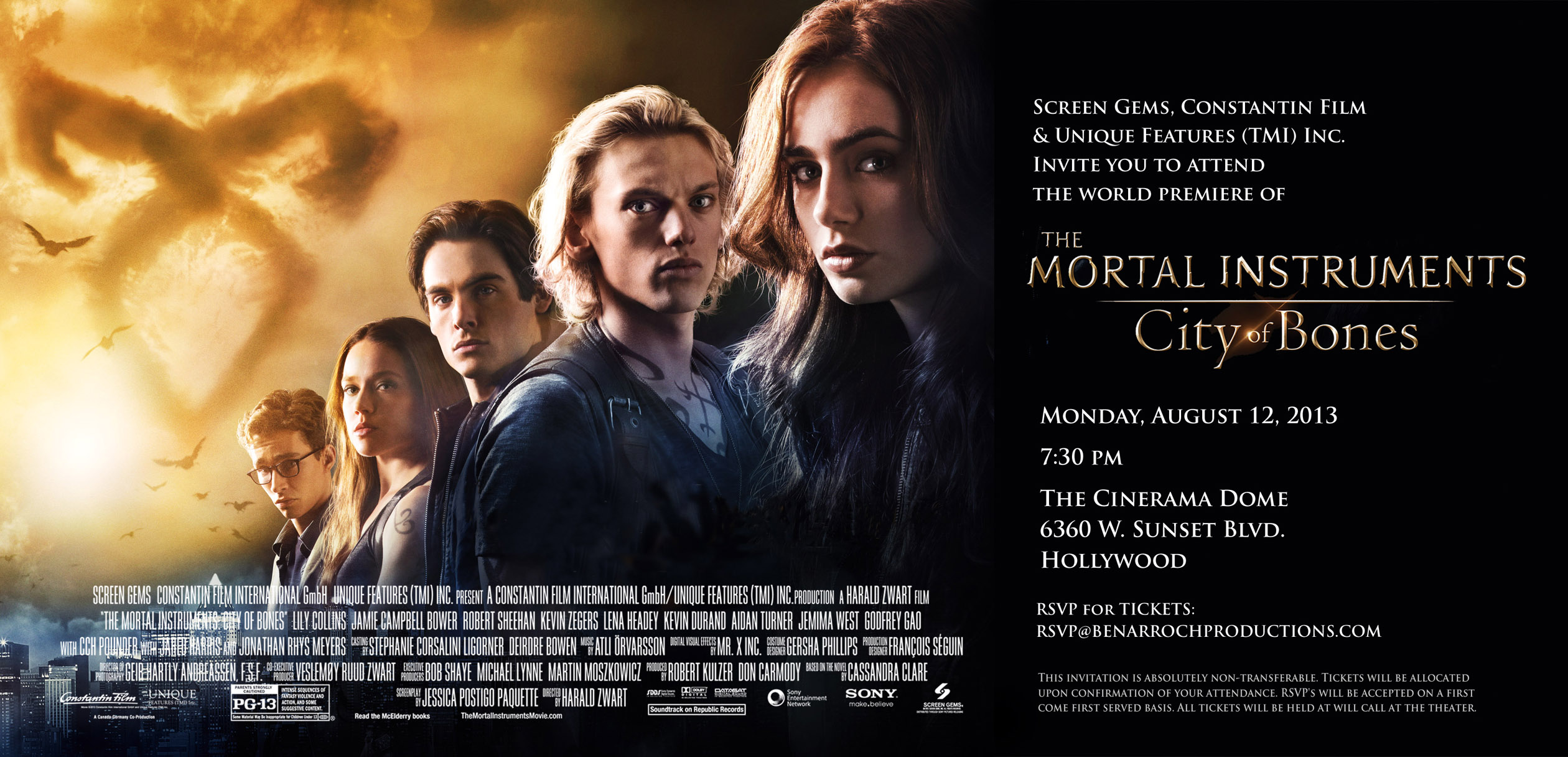 Shadowhunters! We have more details about the world premiere of The Mortal Instruments: City of Bones in Los Angeles on Monday, August 12, thanks to Cassandra Clare.