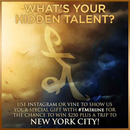 Use Instagram and Vine to show them what gives you strength using #tmirune. You can also win some Mortal Instruments swag and a $250 gift card.