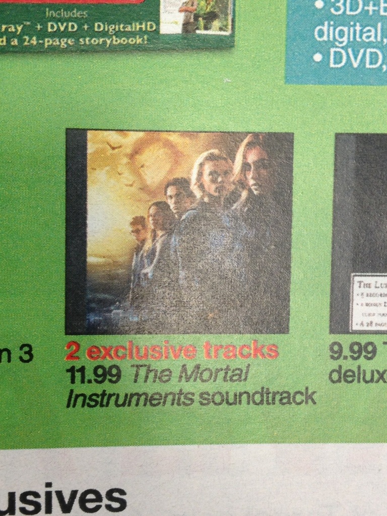Shadowhunters! The official Mortal Instruments: City of Bones soundtrack from Republic Records will be released on Tuesday (August 20). And if you buy it from Target you’ll get two exclusive bonus tracks on it. The soundtrack will be sold for $11.99.