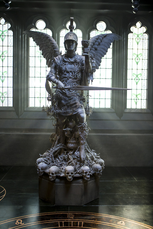 Everything looks awesome but when I look carefully at the statue, it’s scary looking. I don’t imagine angels wearing armor w a hat and stepping on/surrounded by skulls n at a closer look is that a child of some sort under/between his legs?