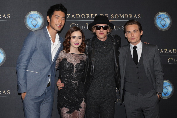 MEXICO CITY, MEXICO - AUGUST 27: (L-R) Godfrey Gao, Lily Collins, Jamie Campbell Bower and Kevin Zegers attend The Mortal Instruments: City of Bones" Mexico City screening at Auditorio Nacional on August 27, 2013 in Mexico City, Mexico. (Photo by Victor Chavez/WireImage)