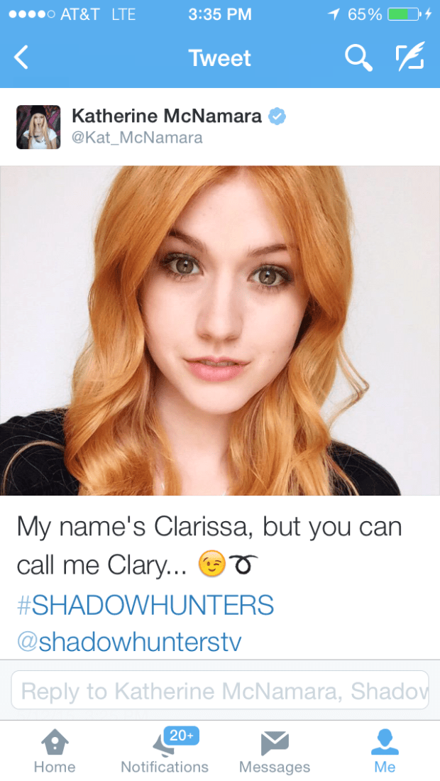 So happy we have a natural redhead cast as clary😆😆